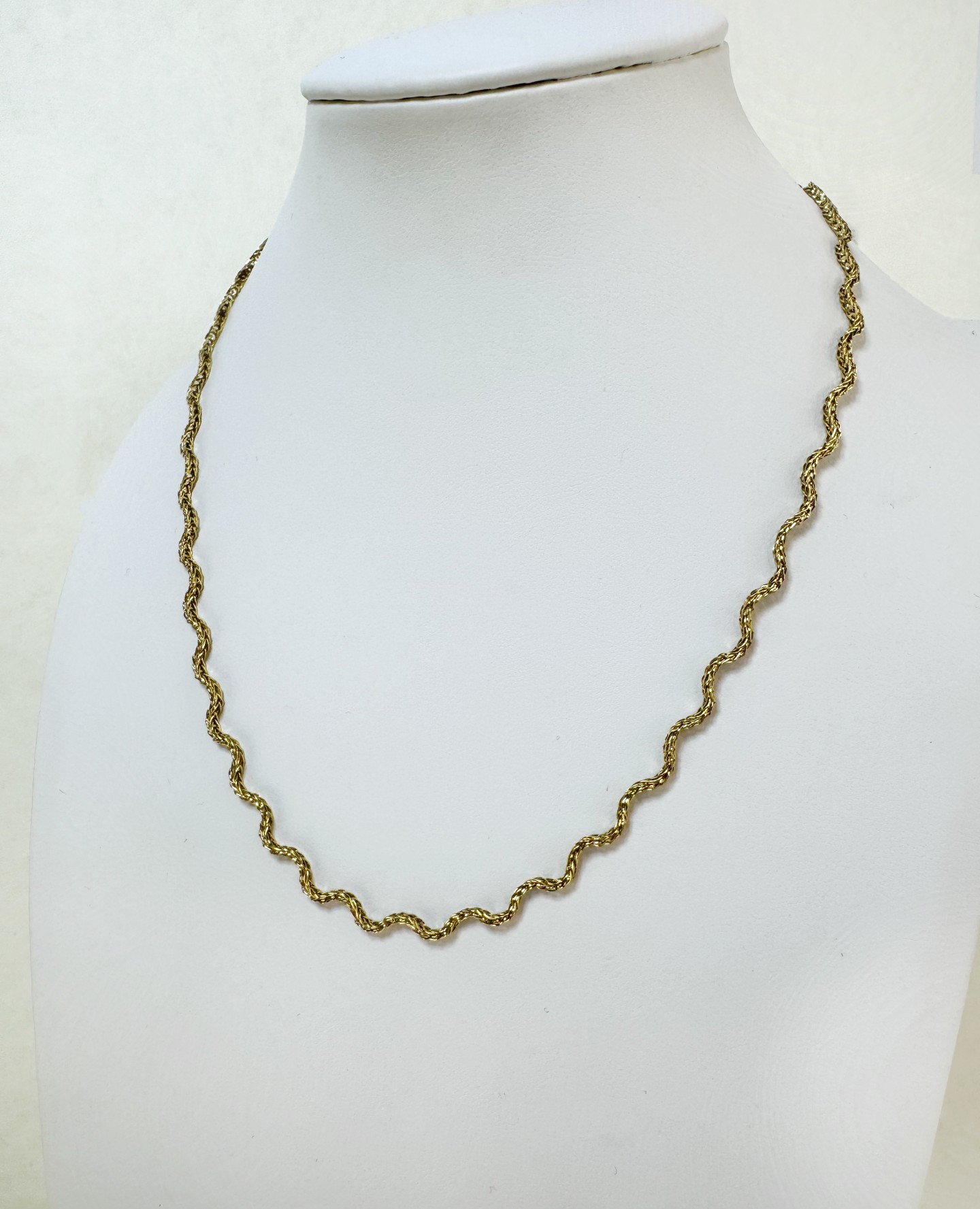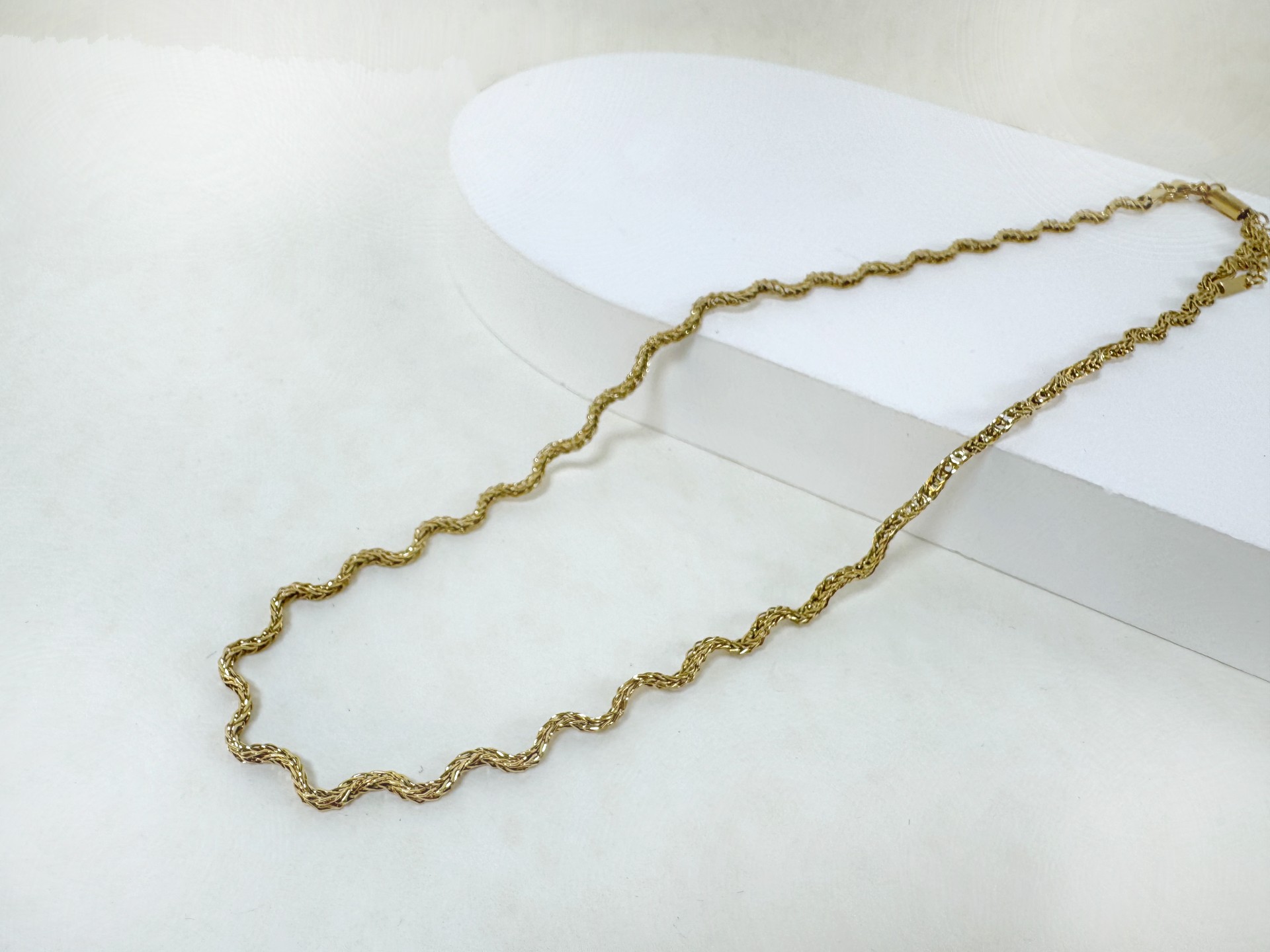 Αυτό το υπέροχο χρυσό κολιέ αλυσίδα από ατσάλι ξεχωρίζει για τον κυματιστό σχεδιασμό του, που δημιουργεί ένα κομψό παιχνίδι φωτός και κίνησης. Ένα διαχρονικό κόσμημα με σύγχρονη αισθητική, ιδανικό για καθημερινές αλλά και πιο προσεγμένες εμφανίσεις. Φοριέται μόνο του για minimal αποτέλεσμα ή σε layering για πιο fashion ύφος, προσθέτοντας χαρακτήρα χωρίς υπερβολή.
