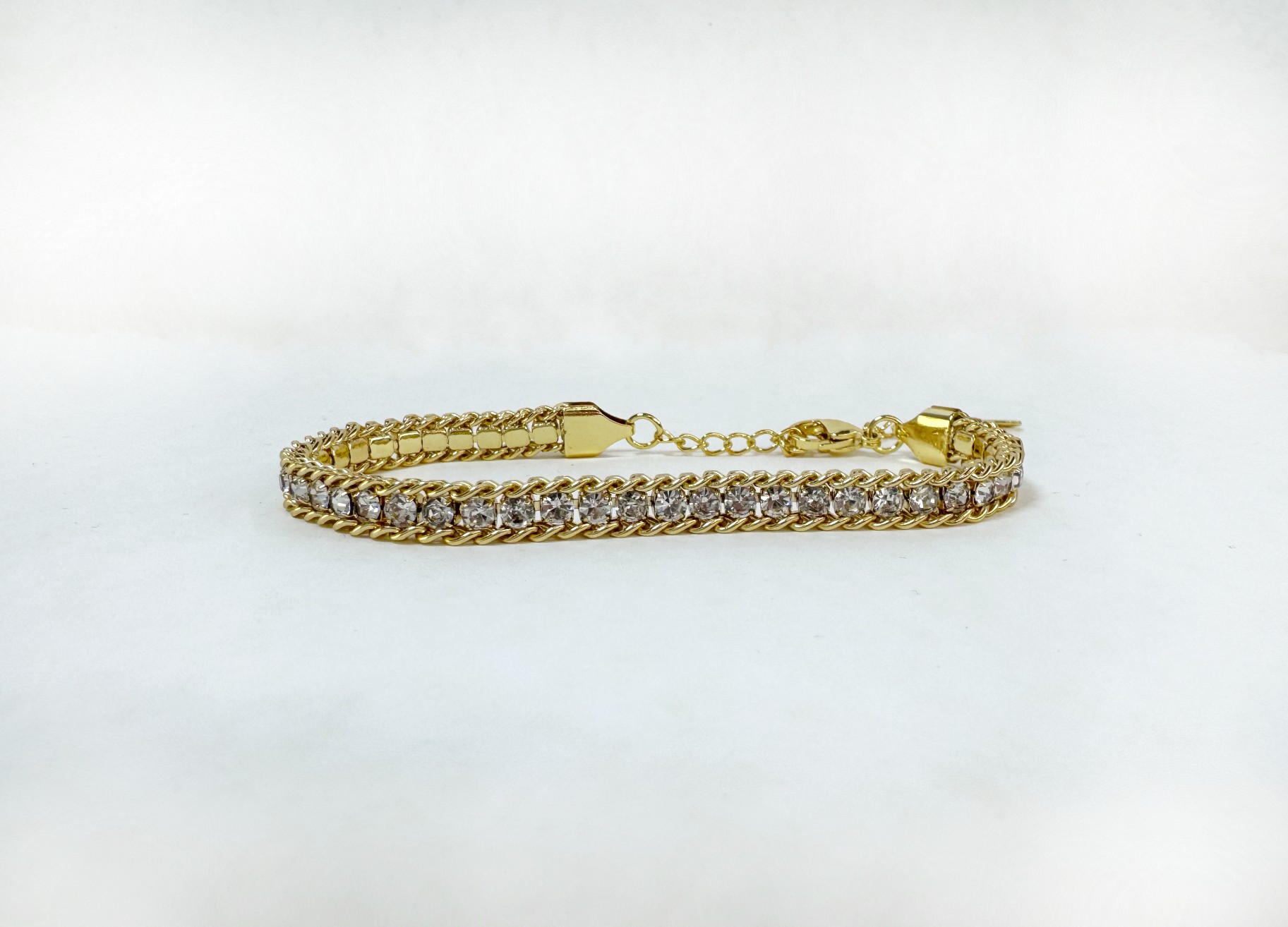 Λαμπερό αλυσιδωτό βραχιόλι με κρύσταλλα που συνδυάζει δυναμική αισθητική με σύγχρονη πολυτέλεια.