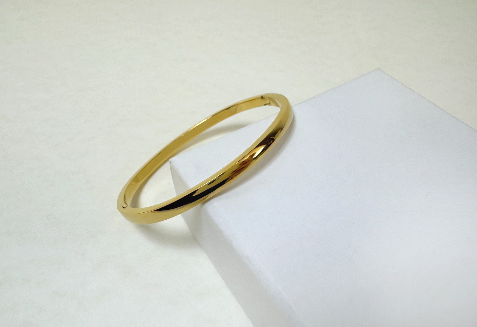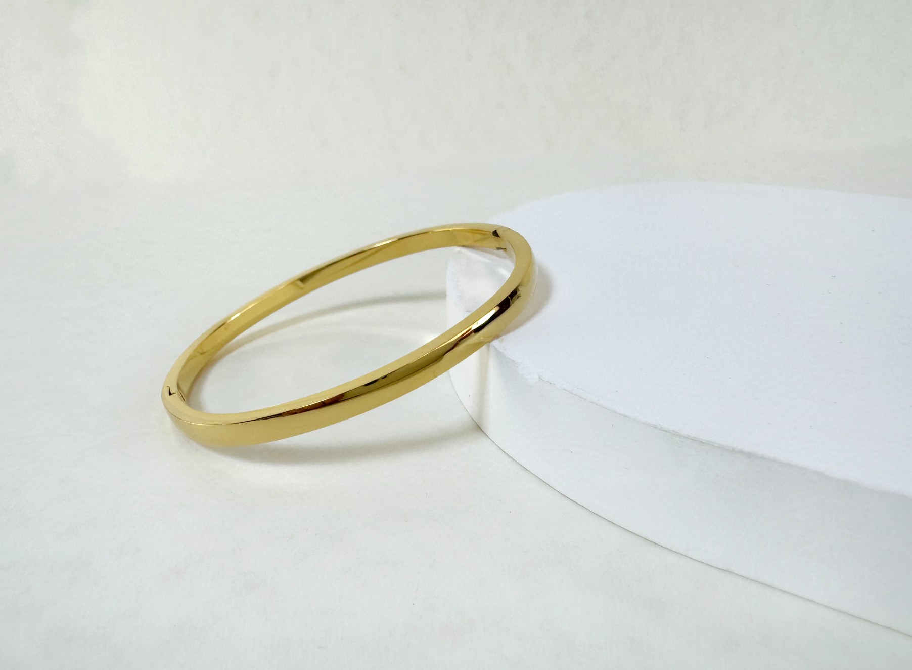 Γυναικείο ατσάλινο βραχιόλι χειροπέδα που αναδεικνύει τη δύναμη της απλότητας. Με λιτό σχεδιασμό και γυαλιστερό χρυσό φινίρισμα, προσθέτει διαχρονική κομψότητα και σύγχρονο χαρακτήρα σε κάθε εμφάνιση.